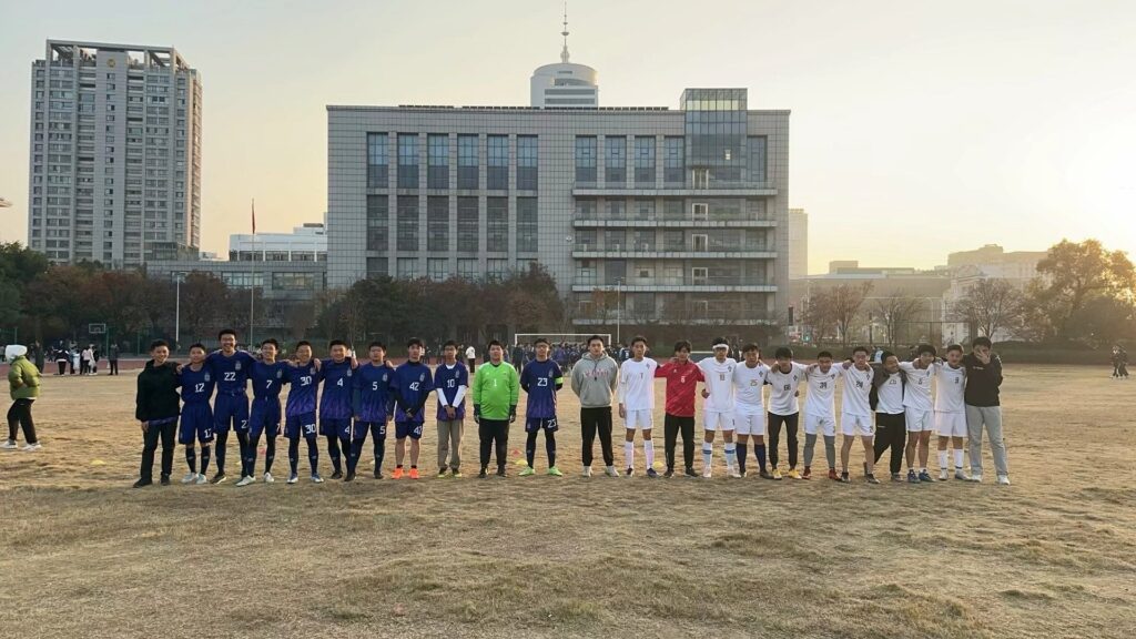 今天校足球⚽️赛开赛。赛前合影。今天气温比较低。穿短裤出战的同学们值得佩服,蓝队加油!费迪南德加油👏